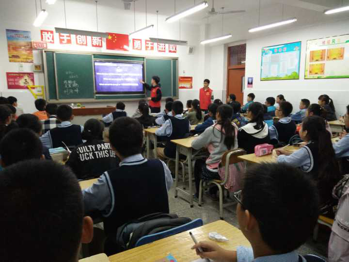 活动伊始,身着志愿者马甲的志愿者向同学们进行了生动而有趣的自我介绍,使整间教室的气氛活跃了起来。经过了与同学们的简单交流,志愿者又以PPT的形式,联系生活实际,教授同学们一些英文的日常用语,并鼓励同学们以“说”的方式来学习英语,进行交流与对话。同学们积极配合,反响热烈。为了增强学习的趣味性,志愿者为同学们播放了神偷奶爸3的英文版片段,生动而有趣的动画极大的吸引了同学们的注意力,增强了同学们对英语的热情。同时,志愿者针对动画短片中出现的英文对话进行了解读,并向同学们推荐了通过看英文电影来学习英语的学习方法,使同学们受到了很大的启发,让他们懂得学习英语也可以是一件快乐的事情。活动的最后,志愿者为同学们播放了英文歌曲lemon tree,为此次活动画上了圆满的句号。