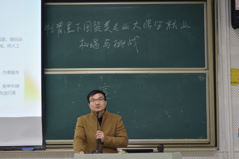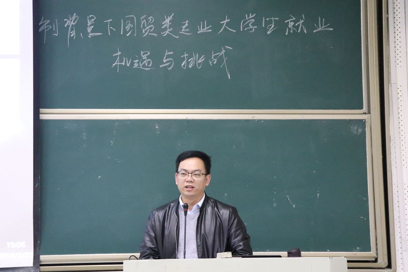 3月21日晚上,为了帮助同学们转变就业观念,由国际经济贸易学院举行的“注册制背景下国贸类专业大学生就业机遇与挑战”主题讲座在明德楼204教室成功举办。东南大学孙老师担任主讲人,我院17级部分学生参加。