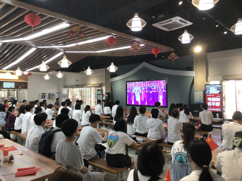 100年,山河巨变;100年,历久弥坚;100年,风华正茂!7月1日上午,庆祝中国共产党成立100周年大会在天安门广场隆重举行。中共中央总书记、国家主席、中央军委主席习近平出席并发表重要讲话。在东校区二号行政楼301会议室、北苑食堂学院组织师生集中收看了庆祝大会直播,认真聆听了习近平总书记的重要讲话。