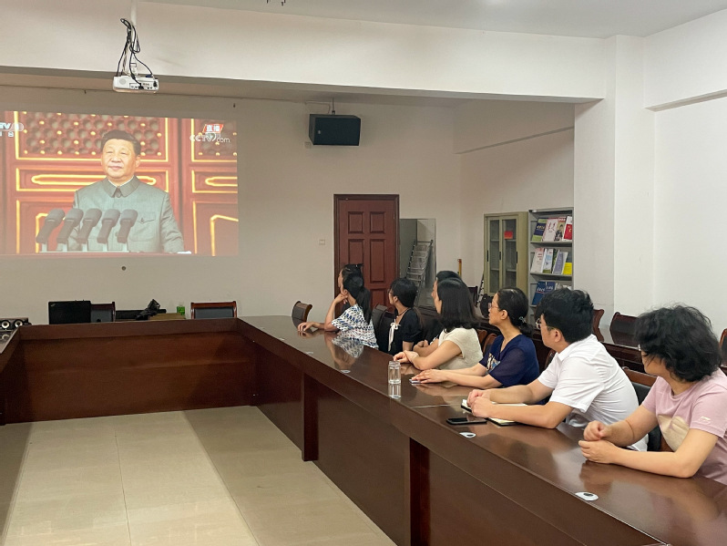 大会结束后,师生们表达了激动振奋的心情,交流观后感受,并且在观看直播时多次鼓掌叫好,为党的百年华诞和伟大成就感到骄傲自豪。师生们纷纷表示要牢记习近平总书记嘱托,从党的百年光辉历程中汲取奋进力量,在以后的工作和学习中,立足本职,多做贡献,牢记党的性质和宗旨,牢记党的初心使命不懈奋斗,为全面建设社会主义现代化国家、夺取新时代中国特色社会主义伟大胜利、实现中华民族伟大复兴的中国梦不懈奋斗。