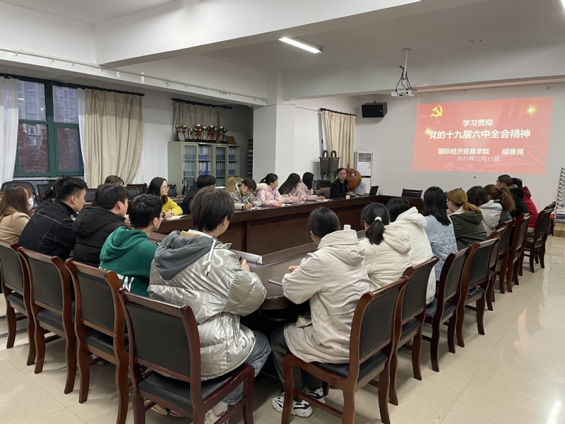 为深入学习贯彻党的十九届六中全会精神,巩固我院团学干部的学习成果,12月15日下午,学院党委副书记胡尊亮为团学干部宣讲十九届六中全会精神。